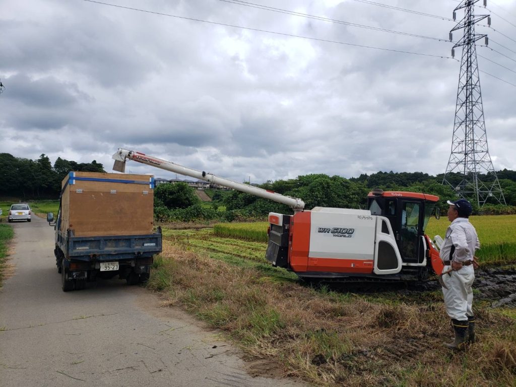 8/7 県内で最も早く収穫される「一番星」生産者の方々が前日まで続いた雨で、圃場内が足場が悪い中、無事稲刈りを実施してくれました。本当にお疲れ様でした。今年採りたての新米楽しみにしております(^^)/